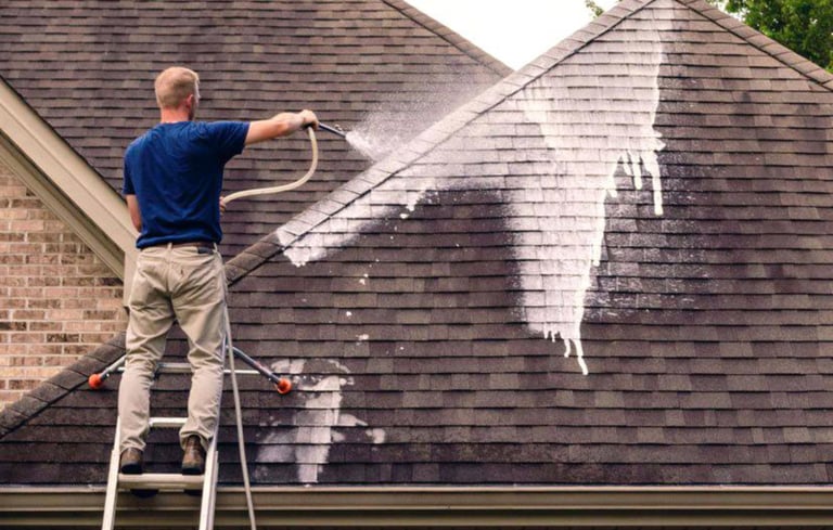 Soft-wash roof cleaning is a safe, effective, and eco-friendly roof-cleaning method. It gently removes stubborn stains, algae, moss, and lichen from roofs, restoring their original beauty and extending their lifespan.