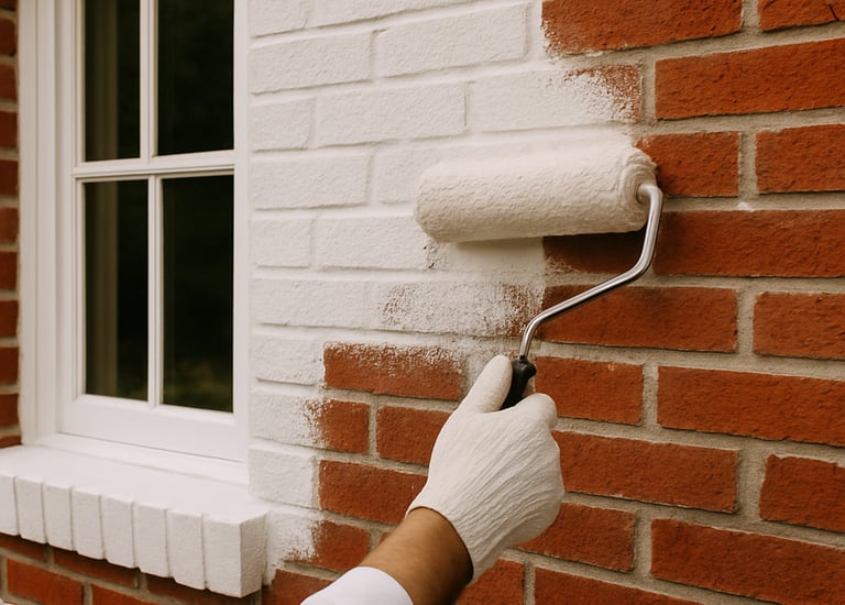 Our process begins with careful preparation. We thoroughly clean the brick to remove dirt and buildup, then repair any cracks or weak mortar joints. Once the surface is sound, we apply a masonry primer designed for brick, followed by high-quality, breathable paint that seals out water while still allowing the brick to release moisture. Each step is essential to creating a finish that lasts.